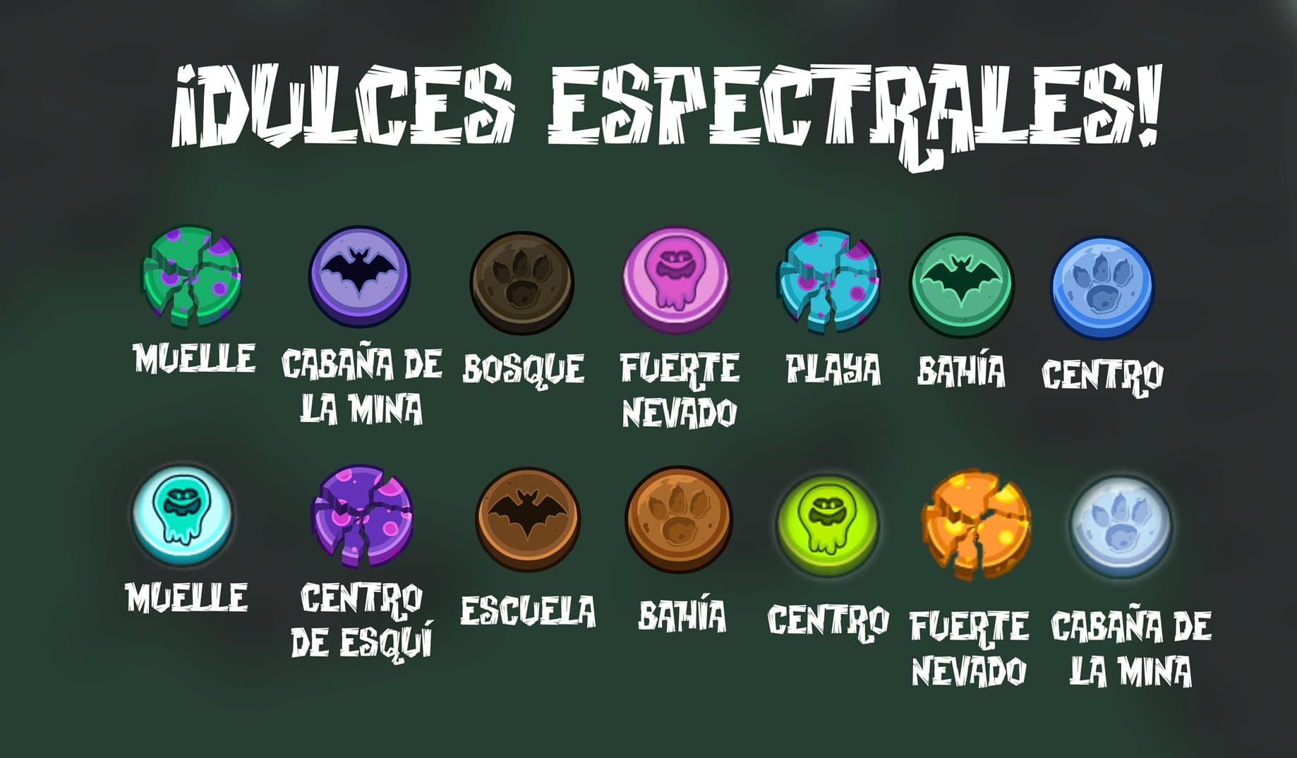 En cada espeluznante sala, necesitamos encontrar un mismo tipo y color de golosina espectral. Para la cacería, tenemos cuatro tipos de golosinas con tres colores para cada una de ellas, en este caso existen hasta 14 caramelos los cuales son los Zinger Zombis, las Galletas Colmillo, las Bolas de Fuego de Luna Llena y los Dulces Fantasmales. Habrá uno cada día hasta el 31 de octubre.