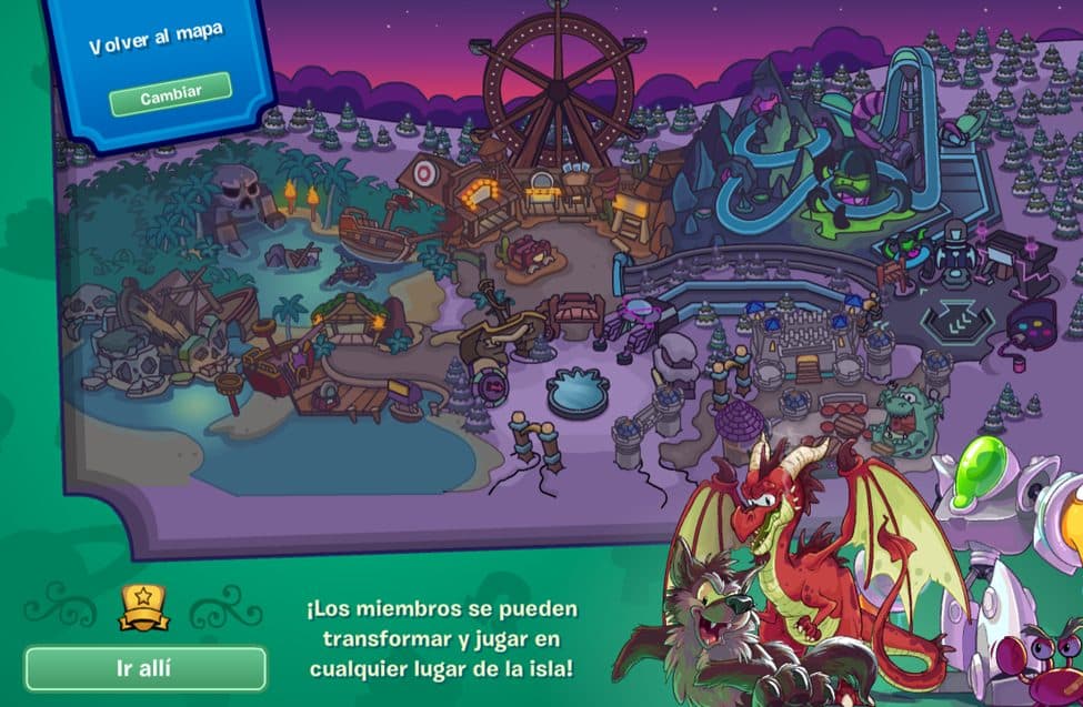 Volviendo a las zonas principales, podemos explorarlas bien sea caminando o a través del ícono del Mapa, conociendo en este caso el Parque Pirata, el Lejano Oeste, el Parque Galáctico y el Antiguo Castillo, cada una con sus propios minijuegos especiales que permitirán obtener tickets al seguir ciertas dinámicas o incluso tirando bolas de nieve.