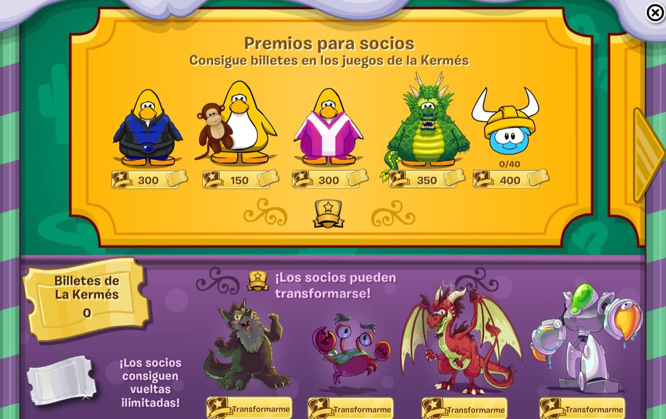 Ya sea al ir hacia el stand de premios o al acceder a la interfaz de la fiesta, todos pueden adquirir increíbles premios al canjear tickets, teniendo cada vez más recompensas con el pasar de los primeros días del evento, pero no solo esto pues además los socios pueden transformarse en pingüino lobo, cangrejo pirata, megadragón y robot del futuro.
